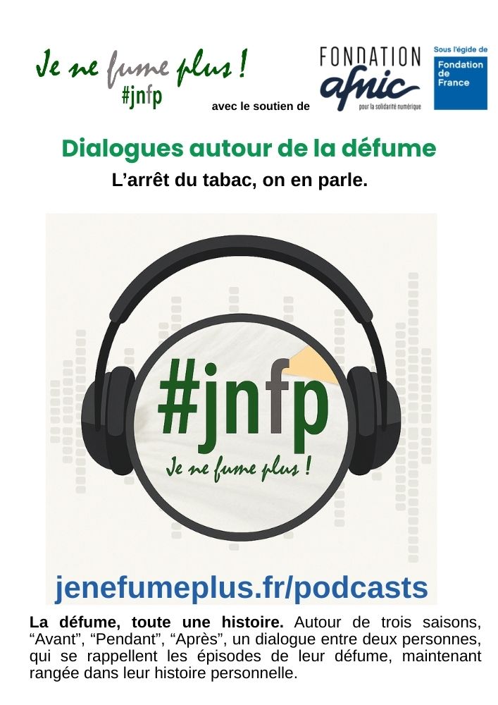 Fondée en 2017 avec le soutien du Fonds Addict’AIDE “Professeur Michel Reynaud”, l’association Je ne fume plus ! #JNFP développe des actions d’autosupport sur les réseaux sociaux, s’engage en prévention pour aller vers les fumeurs dans les entreprises et les structures de santé, collabore avec des ARS pour des projets financés par le Fonds de Lutte contre les Addictions, participe au Comité d’interface de Santé Publique France, forme des pair-aidants et des soignants à l’accompagnement du sevrage tabagique, contribue à la veille et l’information sur l’addiction au tabac fumé et les outils de sevrage sur Facebook, X, Bluesky et Instagram, propose des podcasts sur l’arrêt du tabac en collaboration avec la Fondation AFNIC.